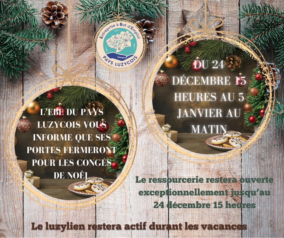Les fêtes de fin d'année approchent à grand pas et il est temps de vous annoncer les dates de fermeture de notre EBE pour les congés.